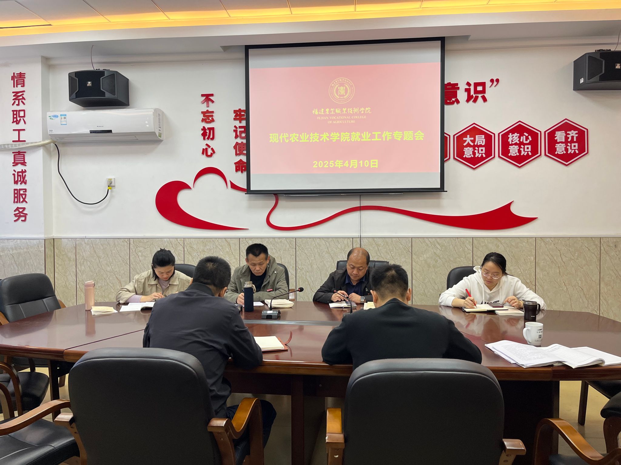 2025年4月10日上午,现代农业技术学院召开就业工作专题会议,学院党总支书记欧高政、院长陈文胜以及部分教职工参加会议。 就业工作推研讨会现场会上,就业辅导员林春发老师通报了本阶段就业工作推进情况及就业推进过程中存在常见的问题。随后,学院院长陈文胜对近期就业推进中存在的问题逐一进行分析,并提出整改意见。他强调,全院教职员工要强化责任担当,切实提高就业工作的温度、力度与精度,全力推动毕业生更加充分、更高质量就业。...