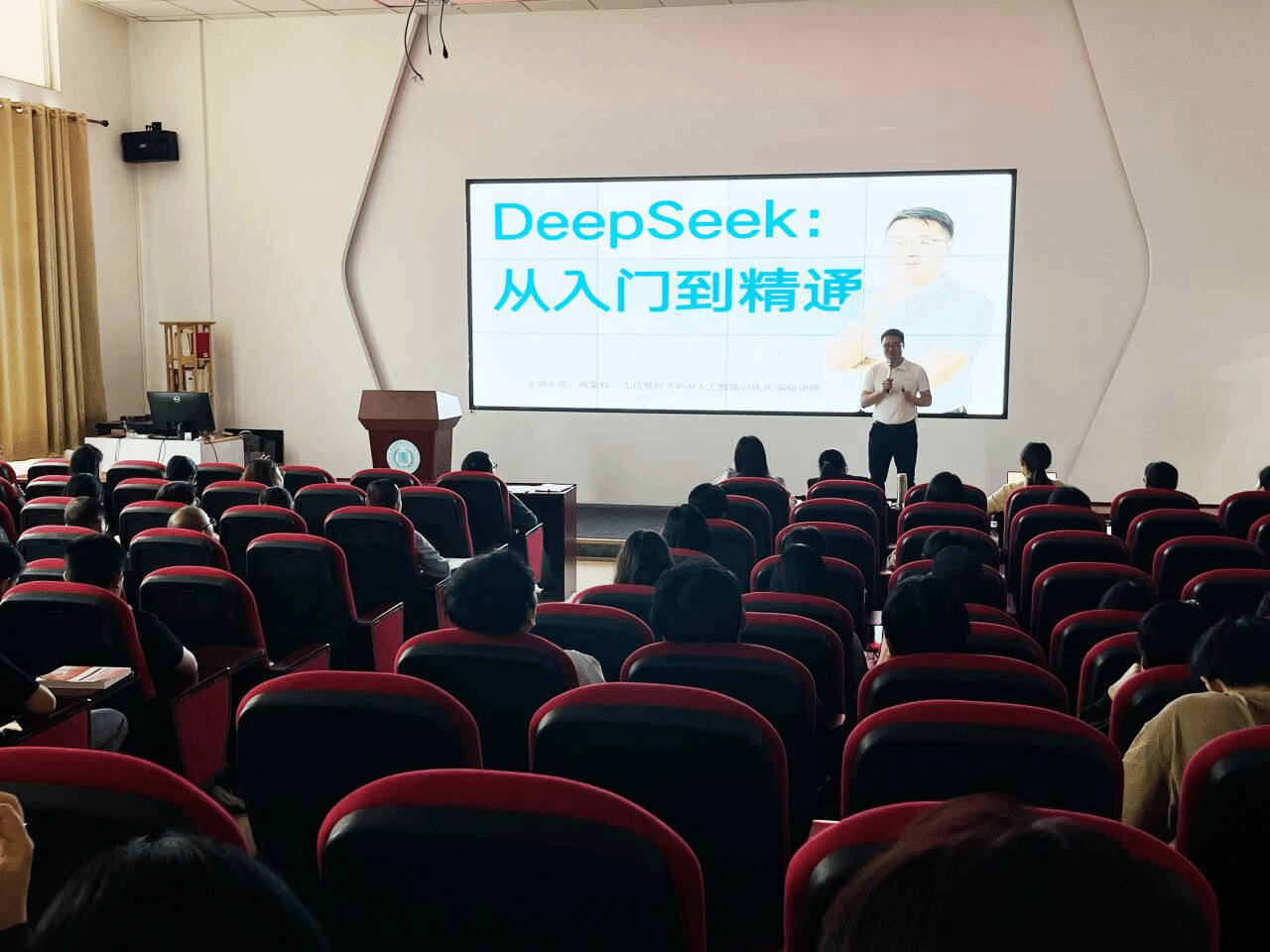 2025年4月23日下午,一场聚焦“AI赋能教育效能提升,增强授课中批判性思考和创意思考能力”的讲座在教(2)212阶梯教室举行,150余位师生参与。 讲座现场,工信部AI人工智能训练师高级讲师——肖常辉老师以DeepSeek智能平台为实操载体,系统演示了AI在提升工作效率的场景化落地应用。在内容生成环节,他展示了五分钟内完成PPT框架搭建、图文排版及动态效果添加的全流程。“AI不是替代创作,而是将机械劳动转化为创意迭代时间。”通过公众号图文自动适配、...