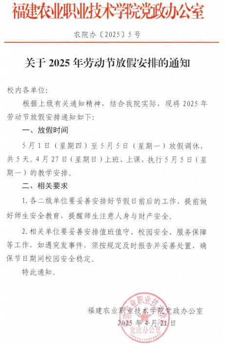 关于2025年劳动节放假安排的通知
