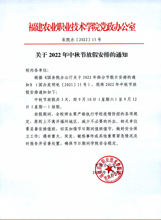 关于2022年中秋节放假安排的通知