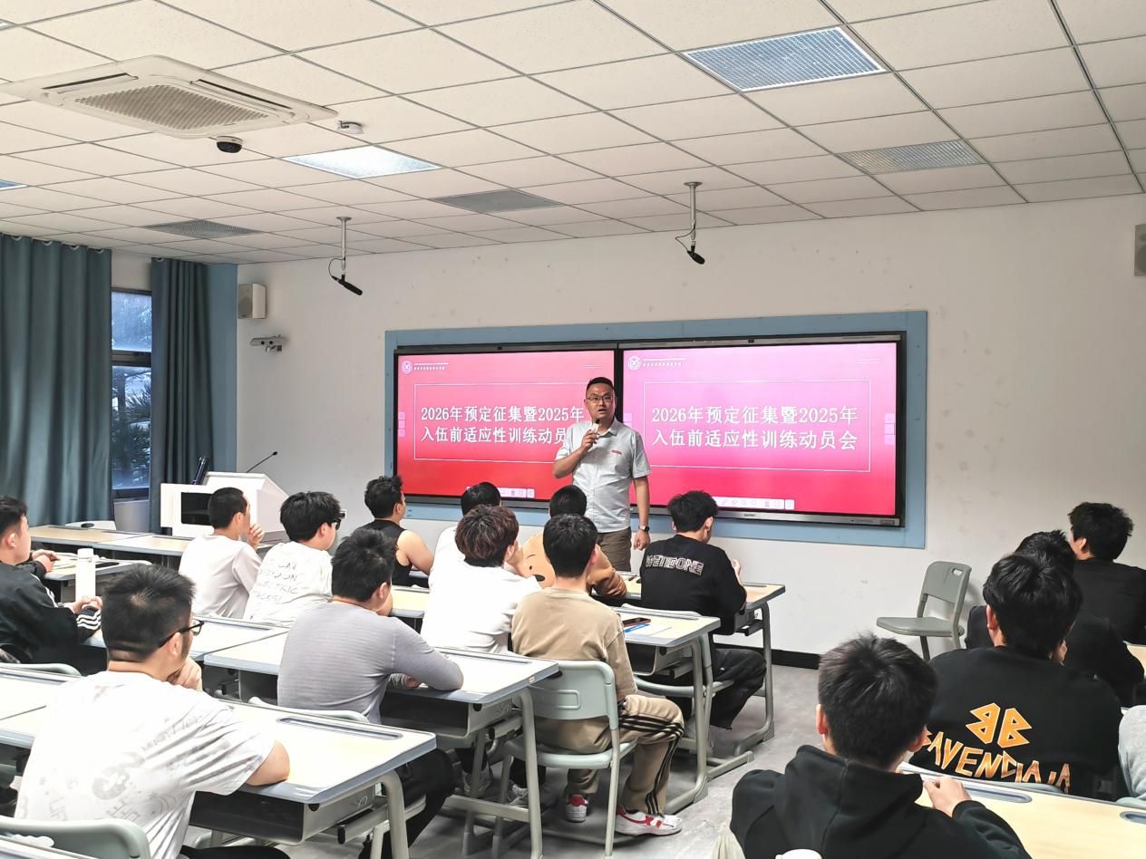 为深入学习贯彻习近平强军思想,积极响应号召,激发学院学子携笔从戎的报国情怀,2025年3月26日,信息工程学院开展以“2026年预定征集暨2025年入伍前适应性训练动员”为主题的征兵工作会议,学工办王盛老师、王荣晨老师及40余名意向参军入伍大学生参会。