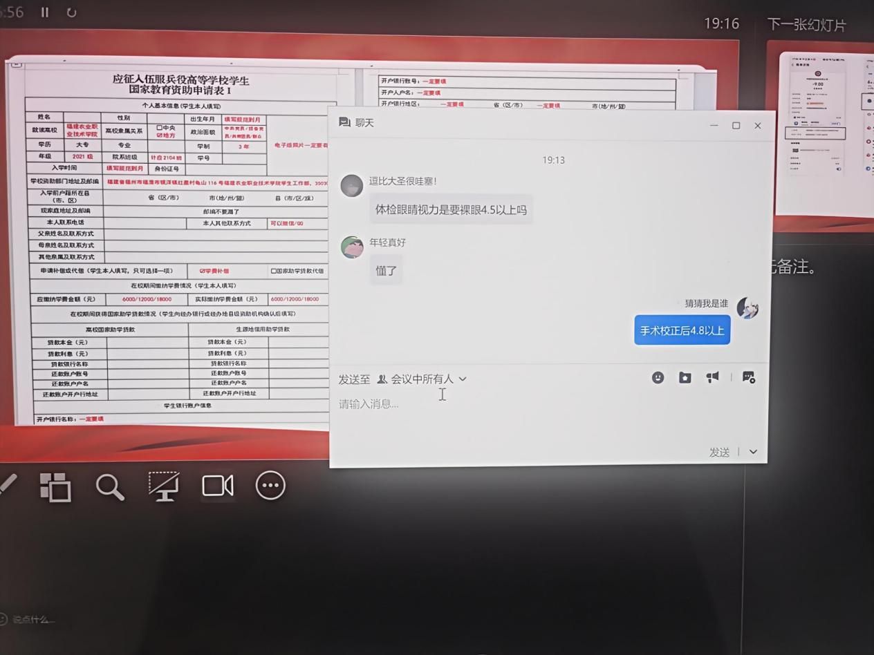 会上,王荣晨老师对2025年春季学院的征兵工作进行简要回顾,对大学生兵役登记、政审、入伍政策、体检注意事项、大学生参军的发展前途、学费补偿办理流程等问题进行了详尽解读。此外,王荣晨老师对2021级、2022级校外参会大学生提出的问题进行了一一解答,并要求意愿入伍的大学生规律作息,清淡饮食,适当进行体育运动,增强身体体能素质,提高征兵体检的过关率。