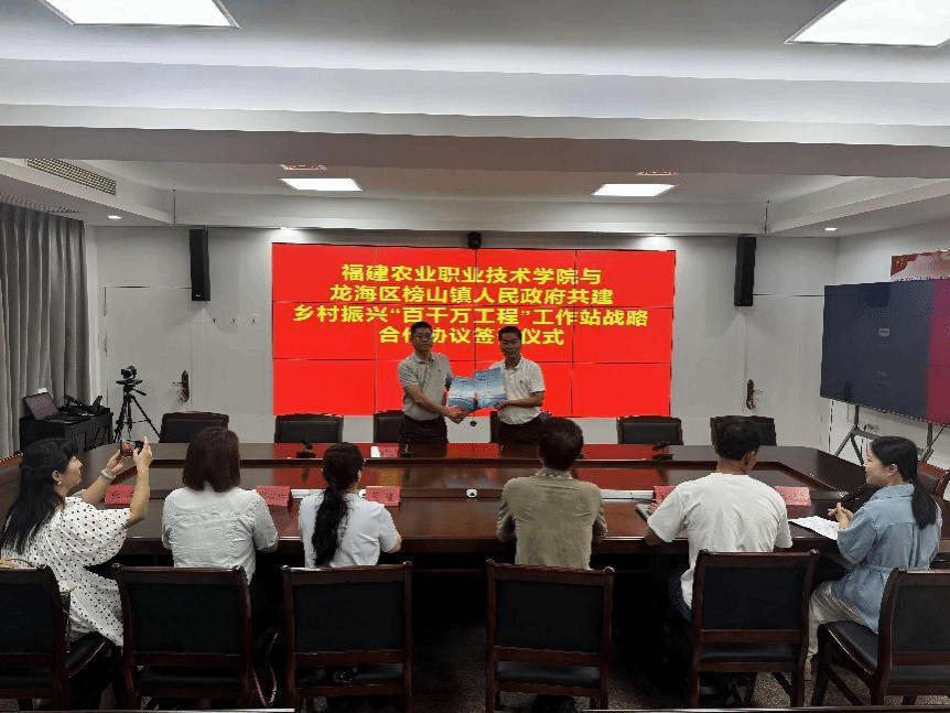2025年7月31日,Beat365中文官方网站与漳州市龙海区榜山镇人民政府围绕乡村振兴“百千万工程”开展深度合作,举行座谈会与签约揭牌仪式。Beat365中文官方网站信息工程学院党总支书记陈云德、榜山镇人民政府人大主席洪伯达、区政协农业农村委主任陈奕鸣、榜山镇人民政府党委委员曾勇辉、榜山镇人民政府科技副镇长林婉霞参加会议。