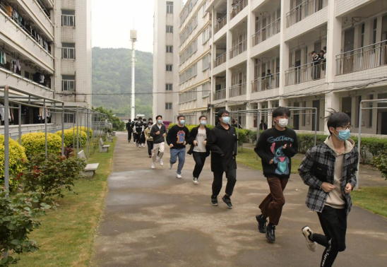 (从宿舍楼道快速撤离)