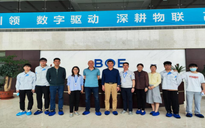 福州京东方光电科技有限公司领导带领陈坛春书记一行参观了企业展厅,介绍了京东方的业务定位、业务发展和成长历程,以及其在智慧交通、智慧办工、智慧教育、智慧零售等各项智慧系统解决方案的展示。企业领导与我校参访老师及8位在企业实习学生开展座谈会,企业介绍了京东方的人才资源培养计划和实施方案,学生也介绍了自己在企业的工作、生活情况,校企双方深入探讨了如何进一步加强产、学、研结合,培养学生的生产实践能力,全面提高教育质量,形成资源共享,优势互补,加深校企双方学生实习基地的进一步合作。
