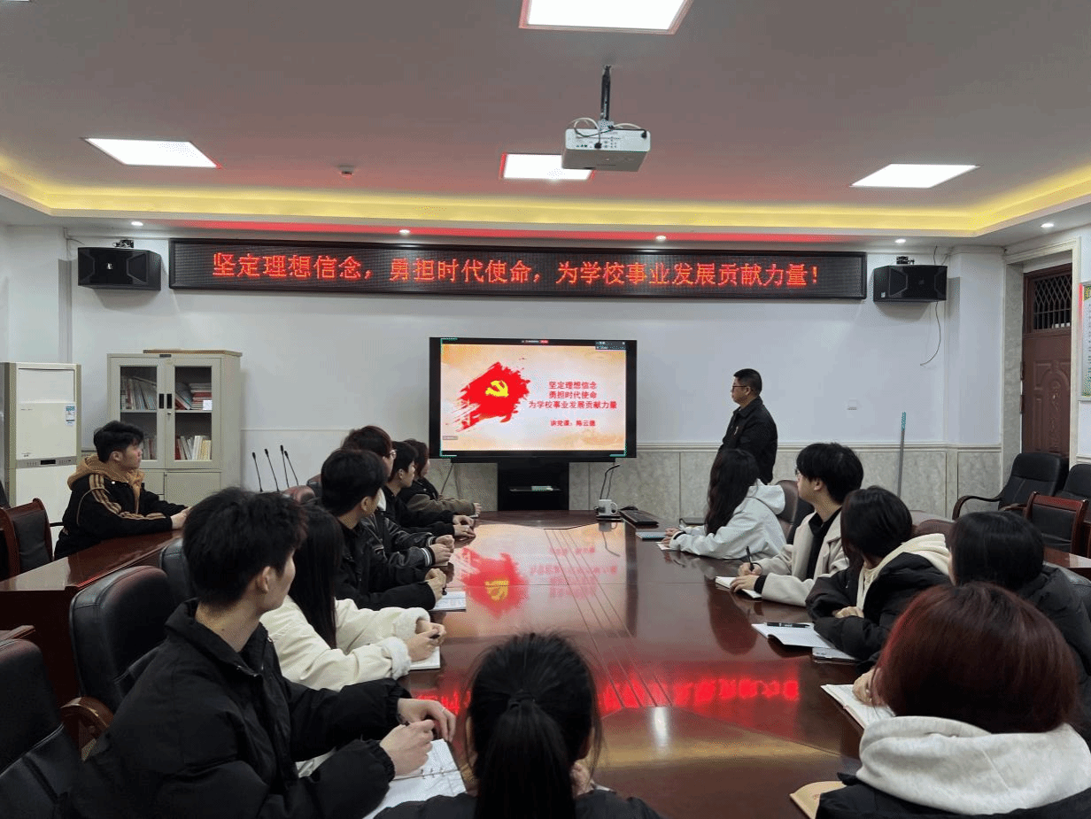 2025年3月6日晚上,信息工程学院党总支副书记陈云德(主持)以《坚定理想信念、勇担时代使命为学校事业发展贡献力量》为题,为信息工程学院学生第一党支部、学生第二党支部师生党员讲授专题党课。