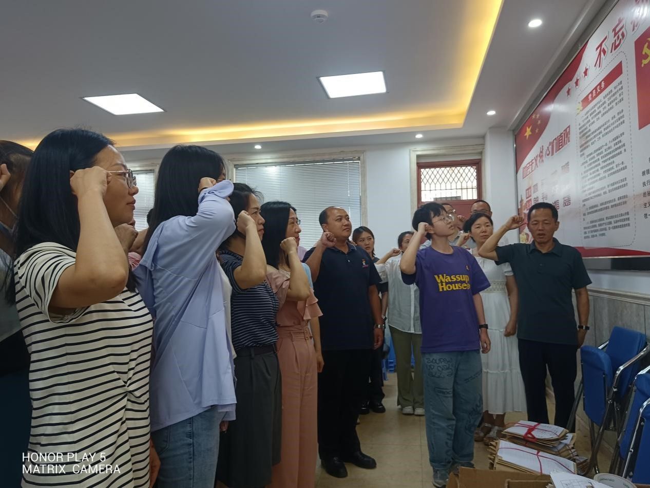 最后,全体教职工党员面向党旗重温入党誓词, 党员同志们举起右手、握紧拳头,重温入党誓词,表达为党的事业奋斗终身的决心和愿望。庄严而肃穆的重温入党誓词活动,使每一位党员再一次接受了心灵的洗礼,加强了党性锤炼和党性修养,增强了每位党员的政治意识、大局意识、核心意识、看齐意识。