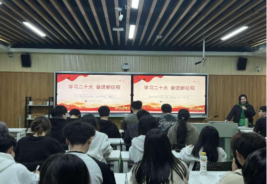 (教工第一支部书记邓丽萍进行《学习二十大,奋进新征程》授课)