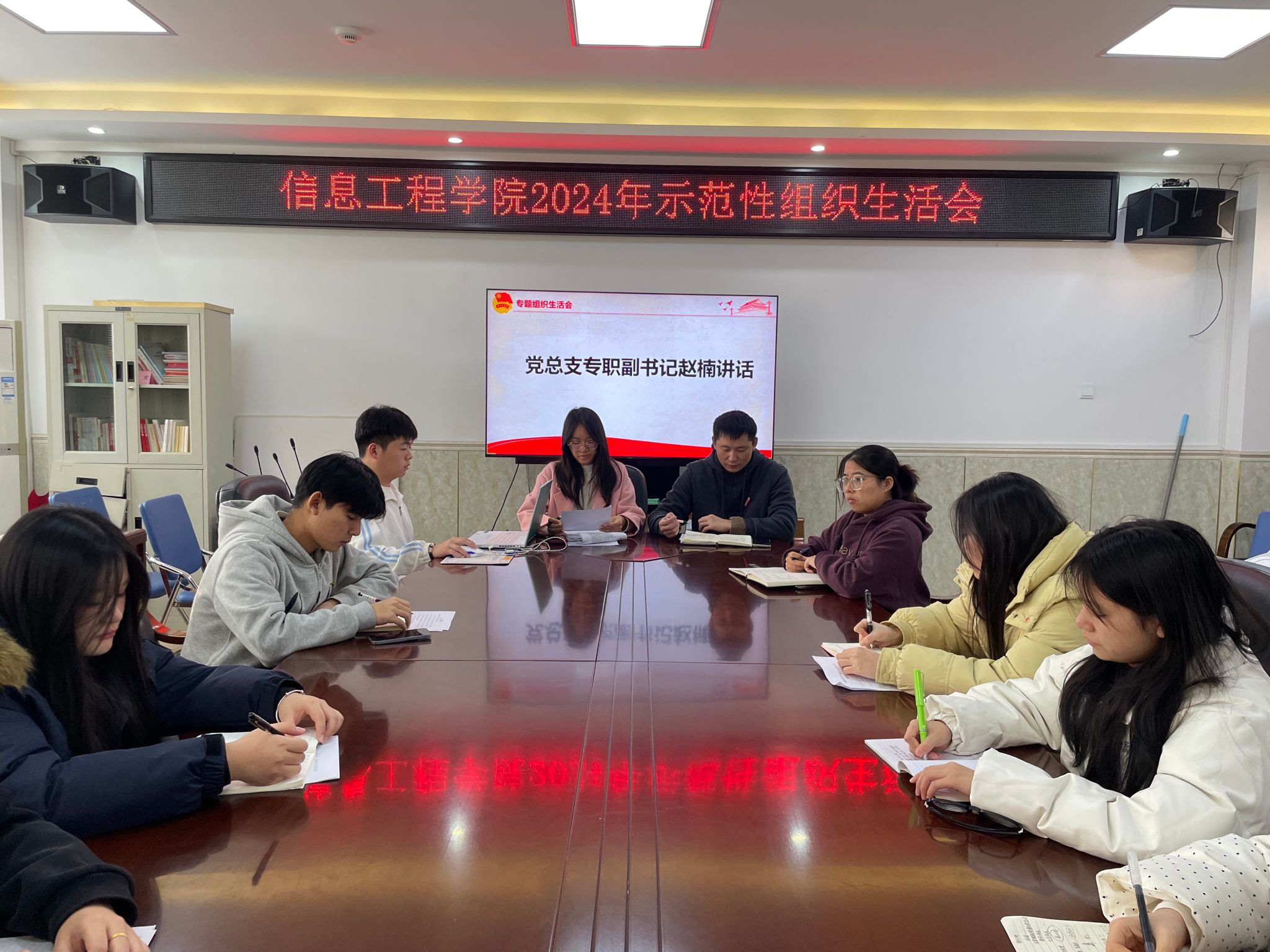 为认真贯彻落实党的二十大精神和党的二十届三中全会精神,根据《团章》《中国共产主义青年团基础组织“三会两制一课”实施细则(试行)》(中青发〔2017〕5号)的要求,12月26日,Beat365计算机应用技术2302班团支部在教学综合楼407教室开展示范性组织生活会,信息工程学院党总支专职副书记赵楠、学生第一党支部书记陈培颖、信息工程学院辅导员罗雪琴下支部与团员青年一起召开组织生活会,会议还邀请了5名青年代表参会,会议由团支部书记缪炳雄主持。