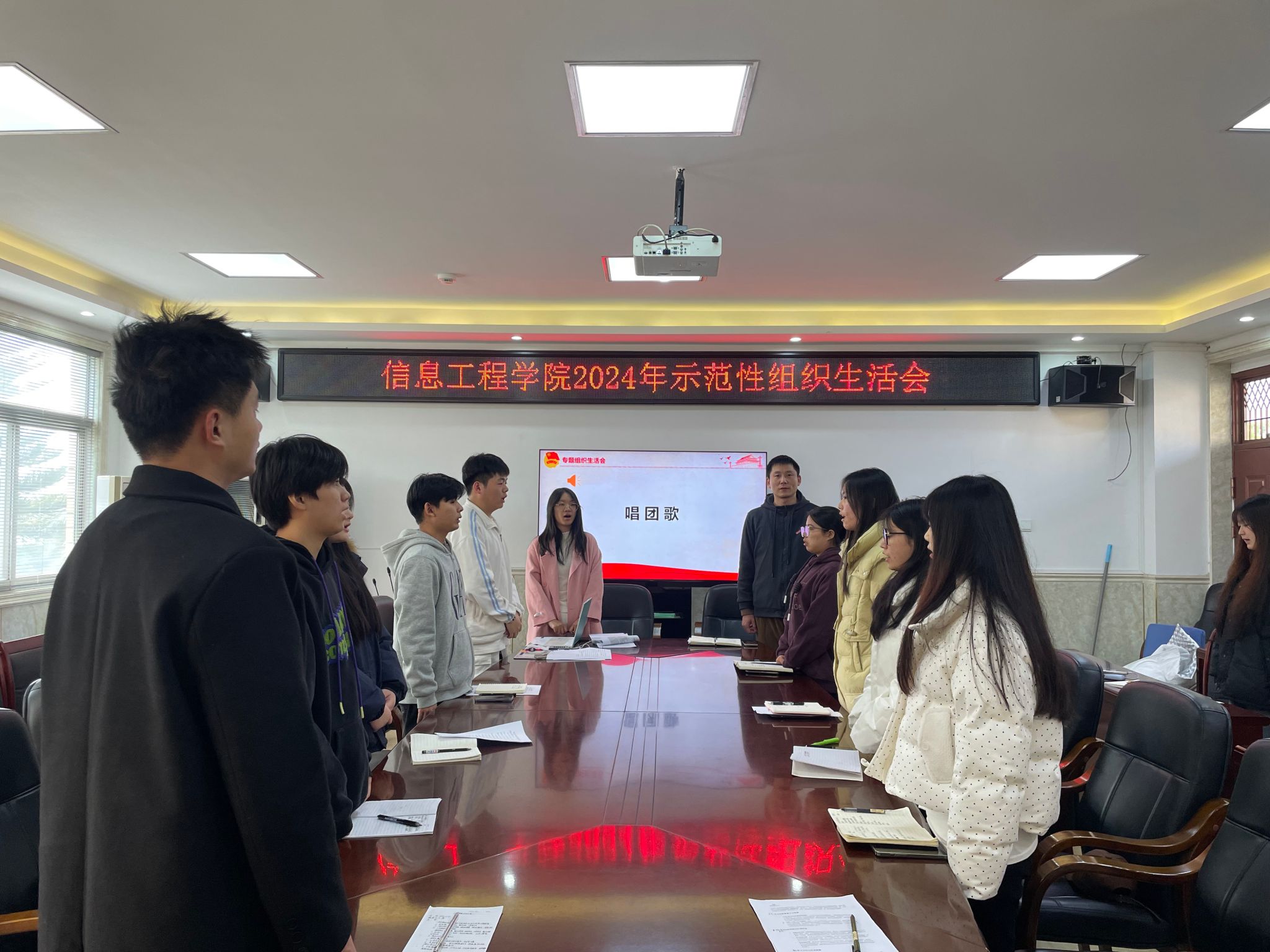 最后,在信息工程学院党总支专职副书记赵楠老师的带领下,团员们庄严宣誓,重温入团誓词,树牢职责使命,铿锵有力的誓言久久回荡。