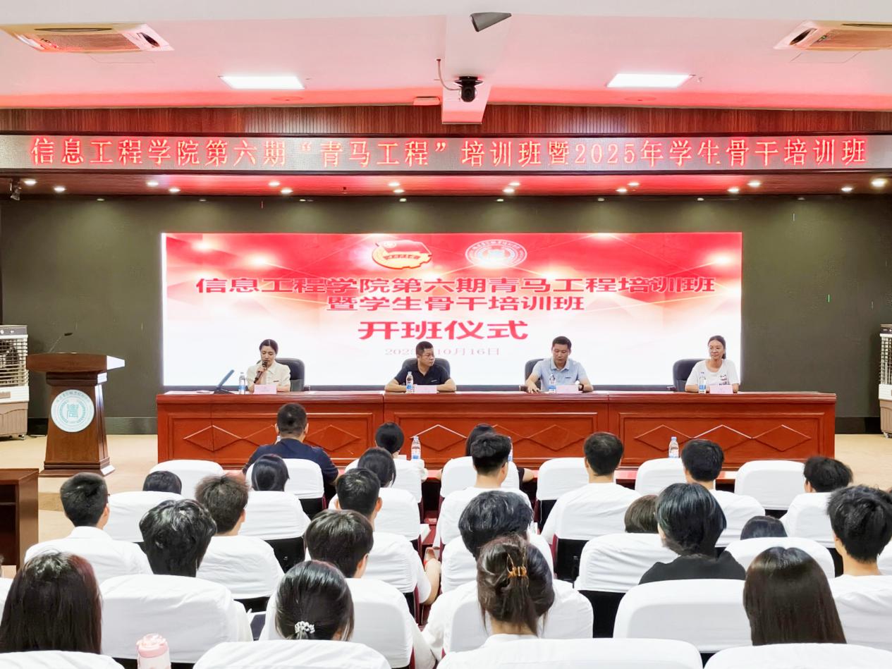为切实落实习近平总书记对青少年成长及共青团工作的重要指示,进一步夯实Beat365共青团基层组织根基、建强学生骨干队伍。2025年10月17日晚,信息工程学院第六期“青马工程”培训班暨学生骨干培训班开班仪式在学术报告厅正式举行。学院党总支书记陈云德、学院党总支副书记赵楠、学工办负责人王盛、团委书记罗雪琴及辅导员老师出席本次会议,活动由胡彩艳老师主持。
