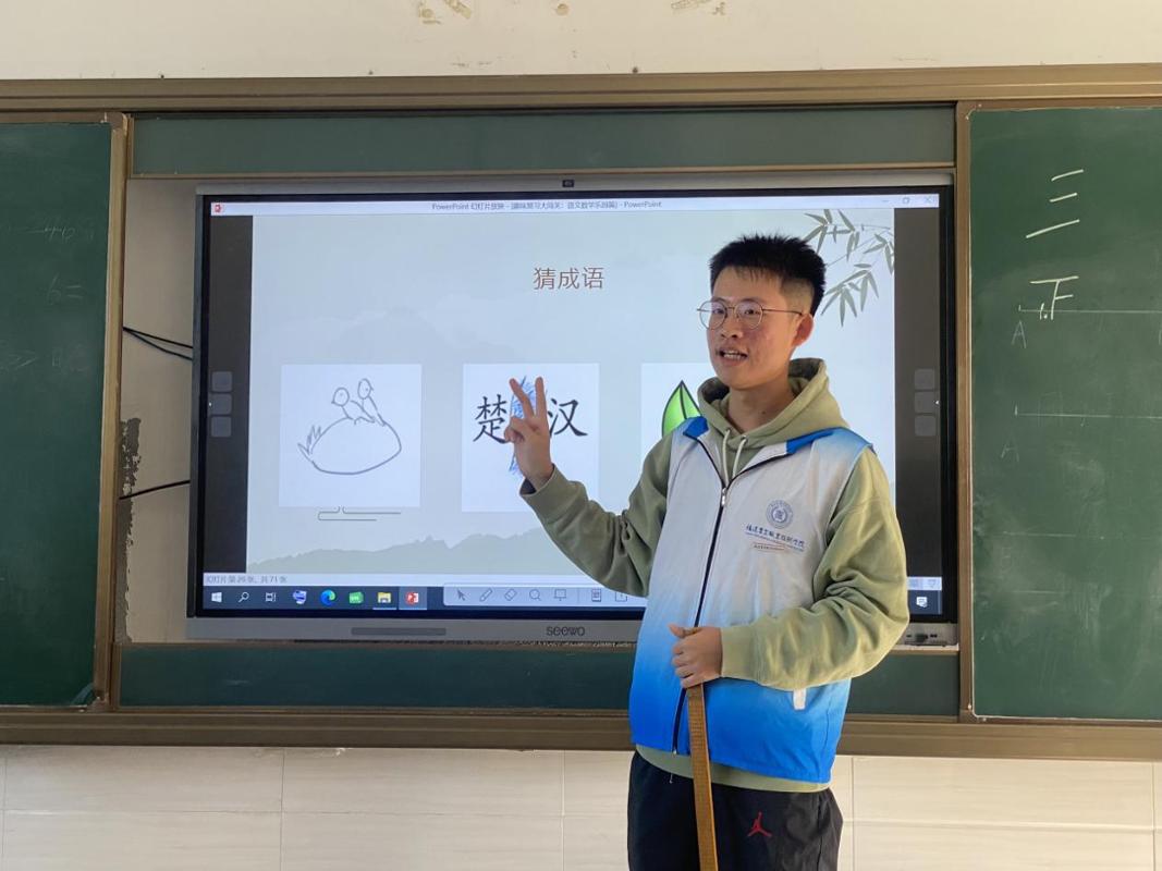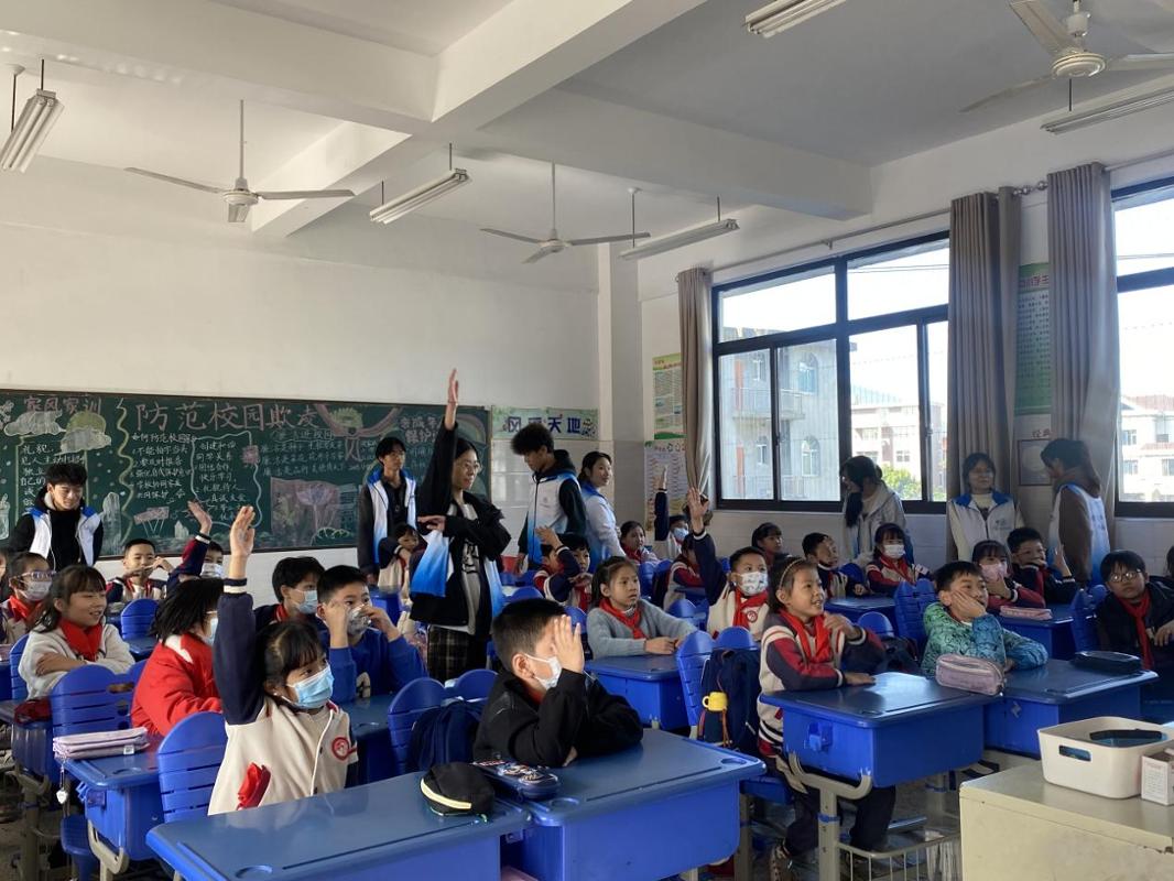 活动伊始,主讲志愿者用亲切的笑容和生动的语言向孩子们介绍活动流程与意义。随后,志愿者通过通俗易懂的提问方式,从基础的语文诗词到趣味数学谜题,从生活常识再延伸至与信息工程相关的科技知识,带领孩子们开启了趣味知识竞赛环节,孩子们频频举手抢答,现场气氛热烈。