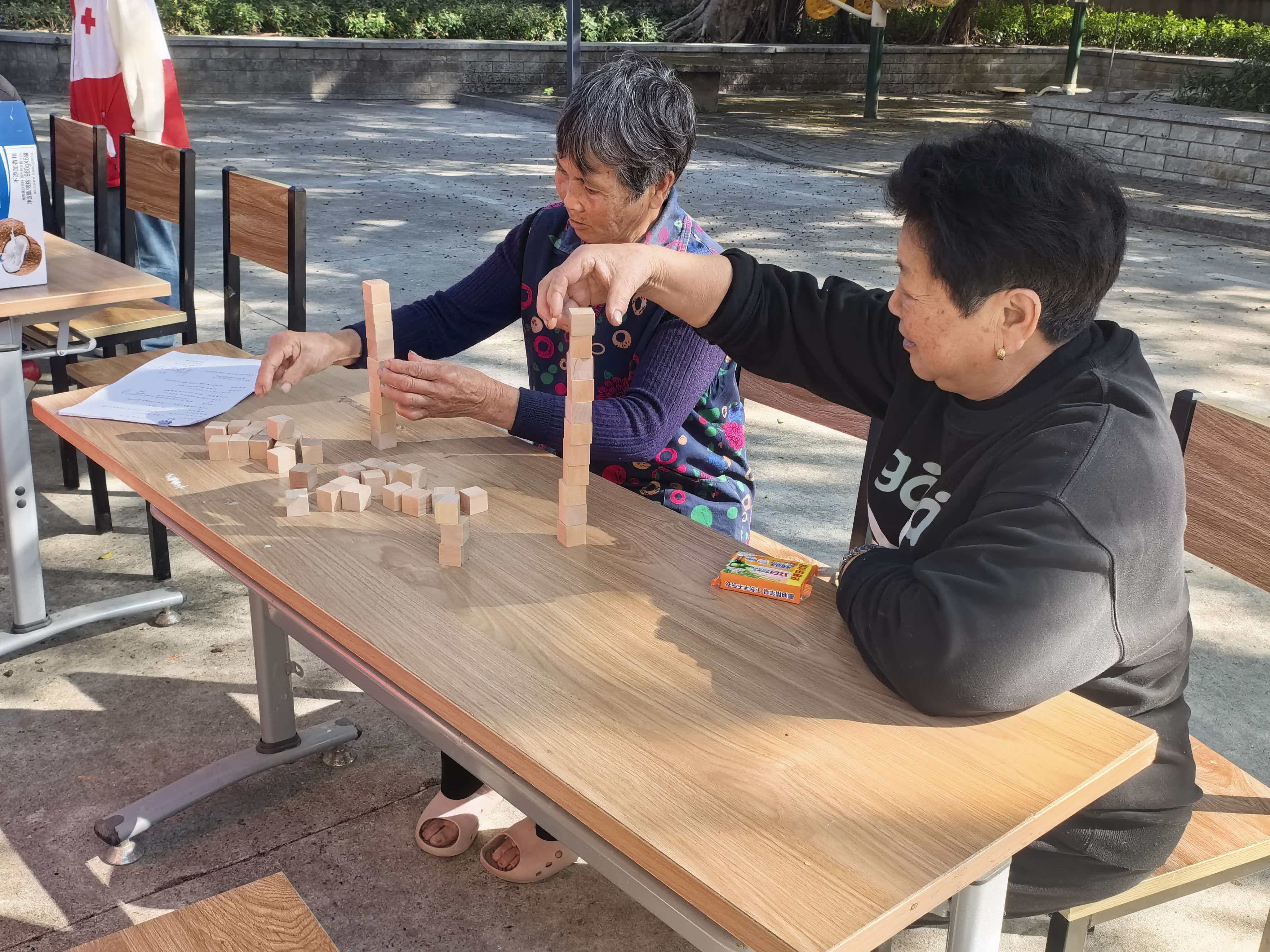 活动过程中,志愿者细心为老人测量血压,询问日常起居与身体近况,一句句关切的叮嘱也将温暖送入老人心间。随后,志愿者精心安排了套圈、叠叠乐挑战、剪纸等趣味小游戏,老人们纷纷参与,脸上洋溢着幸福感,尽享这份冬日的欢乐与温情。游戏间隙,大家围坐一起动手煮汤圆,白雾袅袅升起,香甜的气息弥漫满屋。老人们一边品尝着软糯的汤圆,一边聊着家常,皱纹里漾开暖暖的笑意。