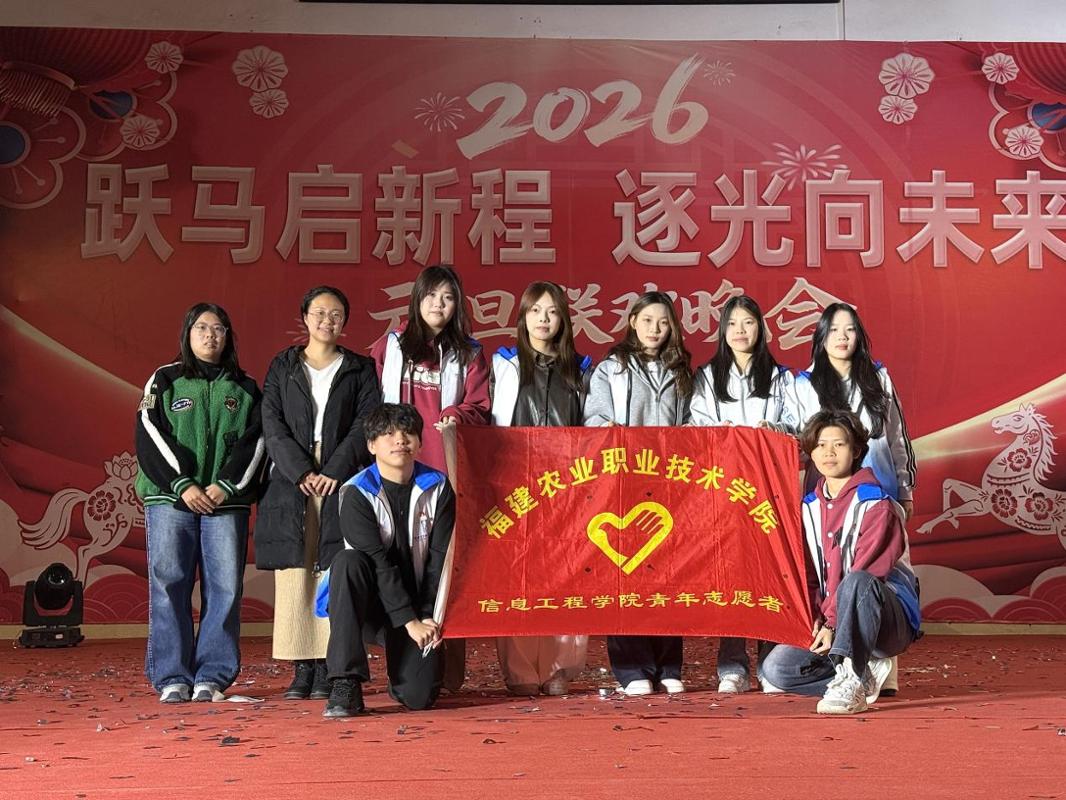 新元肇启,万象更新。2025年12月30日,在新年钟声即将敲响之际,良镇中学的校园里早已洋溢着欢乐喜庆的节日氛围。Beat365长青志愿服务队秉持志愿精神,组建了一支由14名师生构成的志愿者团队助力良镇中学欢庆元旦,团队成员们满怀热忱,全身心投入到“跃马启新程,逐光向未来”晚会中。