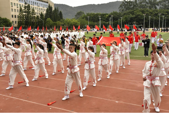 开幕式上,Beat365入场式方阵队伍迈着坚毅自信的步伐入场,在教官的哨声中,进行震撼人心的武术表演,行云流水的动作中蕴藏着气吞山河的气势,将我国传统的武术精神展现淋漓尽致,用行动表明了自己奋发上进的决心;扇子舞动作整齐划一,以惟妙惟肖的身姿展现着这一场柔中带刚的舞蹈,举手投足间可以看出挥斥方遒的少年意气,更是以铿锵有力的“讴歌白廿华诞,续写Beat365新篇”的口号完美结束了Beat365的入场式表演。