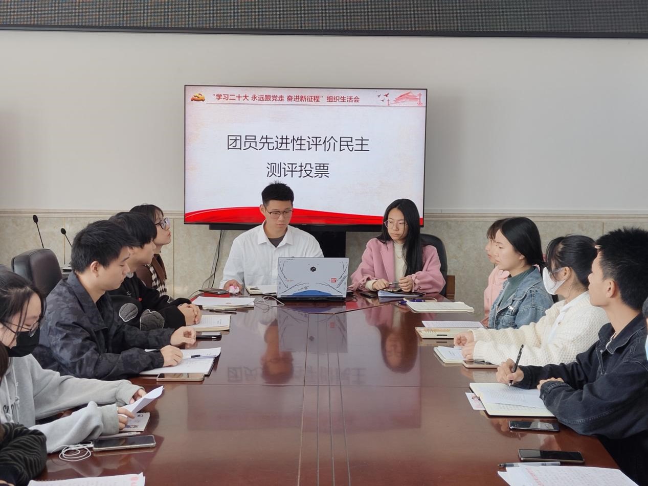 会上,团员们联系自身实际,对照党的二十大确定的战略目标和重大任务,对照习近平总书记对新时代共青团员的一系列要求和希望,对照团员先进性评价标准,围绕学习收获、自身不足、改进方向等方面进行自我阐述。随后开展团员先进性评价民主测评投票,与会教师进行点评讲话,并组织支部团员重温入团誓词。