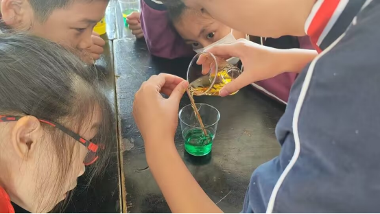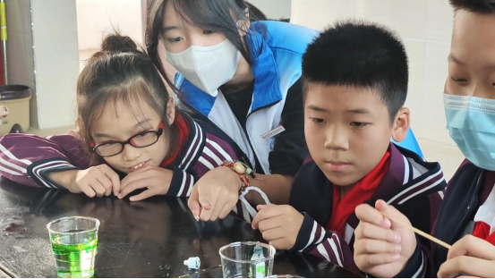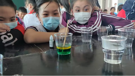 (与同学们共同进行彩虹雨实验)