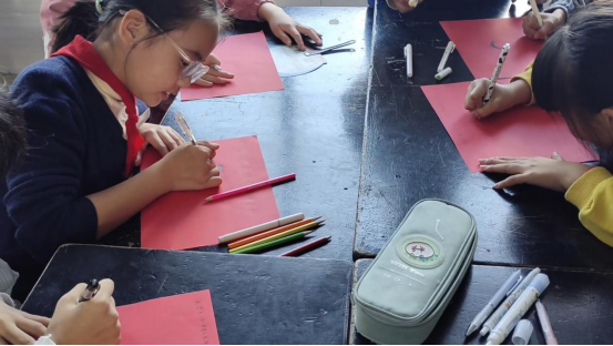 (活动结束后同学们将梦想写在纸张上)