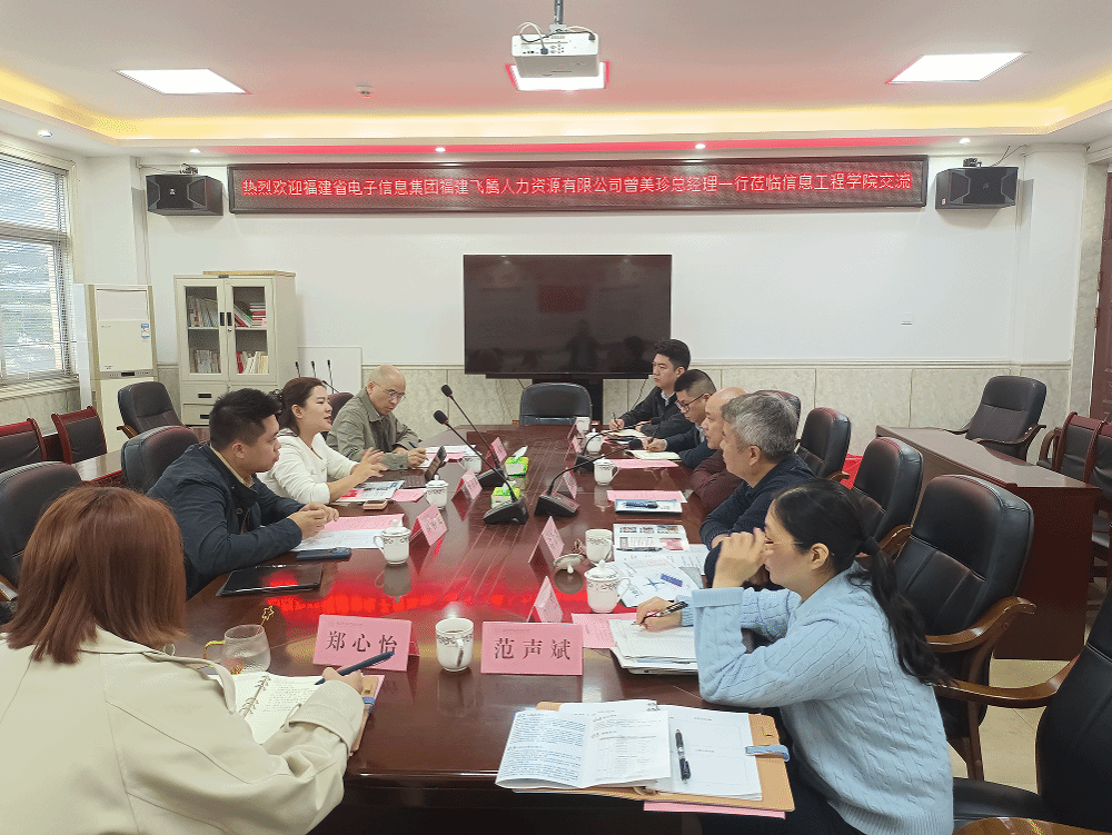 为了充分发挥校企合作资源优势,打造多元化供需对接平台,搭建企业与院校沟通桥梁,全力促进毕业生高质量充分就业, 4月25日上午,信息工程学院在教学1号楼407会议室,开展“企业进校园”交流座谈会暨访企拓岗活动,邀请了福建飞腾人力资源有限公司入校开展校企座谈交流活动。信息工程学院院长刘必健、党总支副书记(主持)陈云德与来访企业座谈交流,继续教育中心主任庄金兴、各专业负责人、就业辅导员共同参加。