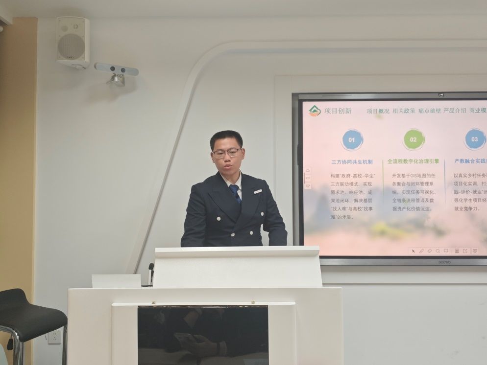 本次大赛涵盖人工智能、研学旅行、健康养老、文化创意、乡村旅游等多个领域。经过初选、评审共有11个项目晋级决赛。比赛现场,各参赛选手依次上台,围绕项目的背景、商业模式、项目创新性、核心技术、市场前景等进行展示,全方位呈现了项目的创新亮点、技术可行性和市场应用前景。
