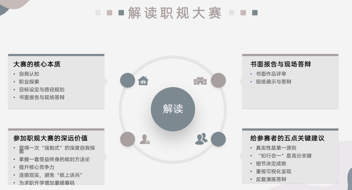 林燕老师强调成长赛道应聚焦于生涯发展理念的构建、职业目标的合理设定,以及围绕目标持续行动、动态调整的成长过程,同时注重通过学习实践提升综合素质与专业能力的发展轨迹。就业赛道则要着眼于提升求职竞争力与岗位胜任力,强化实战能力。备赛不是盲目冲刺,而是精准定位、细节打磨的系统过程。只有找准赛道重点、对标优秀特质、做好全面准备,才能在万千选手中脱颖而出。