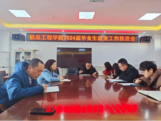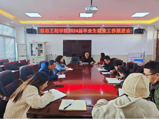 1月5日下午,我校信息工程学院在407会议室召开2024届毕业生就业创业工作推进会,学习贯彻习近平总书记重要指示批示精神,贯彻落实全国和全省2024届高校毕业生就业创业工作视频会议精神,总结2023年就业工作,研究部署做好2024届毕业生就业创业工作。学院党总支书记陈小华、副书记张宏和各毕业班辅导员参加会议。