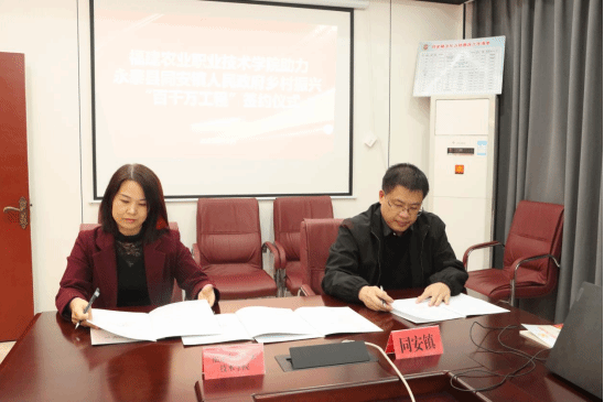 12月18日,Beat365中文官方网站信息工程学院和永泰县同安镇在同安镇政府办公室举行了Beat365中文官方网站助力乡村振兴“百千万工程”项目合作协议签订暨授牌仪式。永泰县同安镇党委书记汤炎灯、永泰县同安镇党委副书记、镇长范文和信息工程学院党总支书记陈小华等参加仪式。