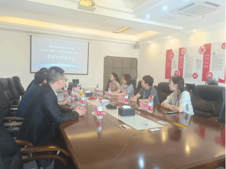 福建云豆网络科技有限公司总经理郑豪英为党总支书记陈小华一行四人介绍了企业的发展历程、企业文化及主要荣誉,校企双方分别表达了在人才培养、学生实习就业等领域开展深入合作的期待,希望校企双方在“育人”与“用人”的精准对接。