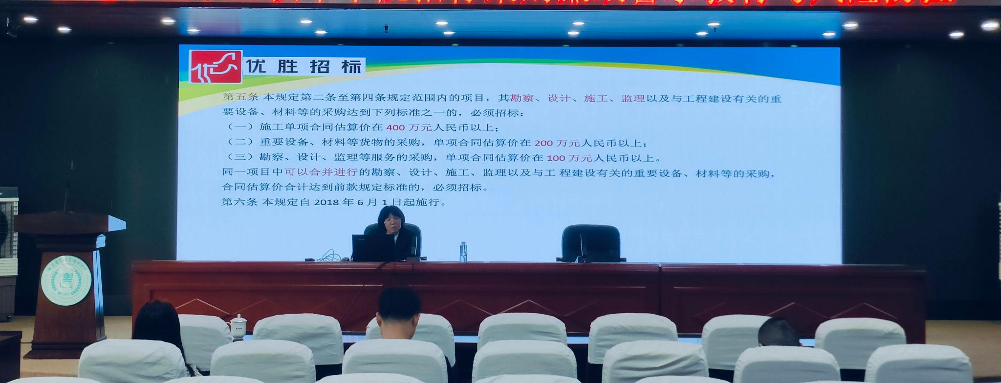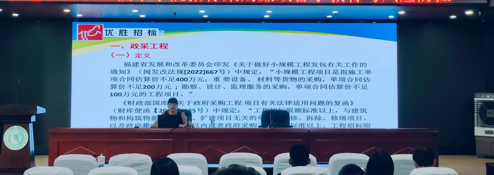 吴苹工程师作《政府采购工程政策解读及风险防范研讨》专题培训,从政策法规适用、风险防范措施、实务应用等方面对政采工程作重点讲解。