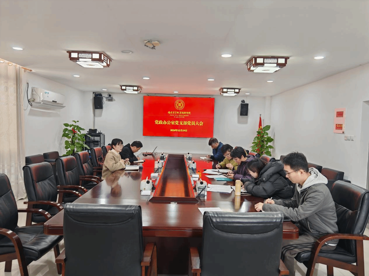 12月19日下午,党政办公室党支部在闽台楼708会议室召开支部党员大会暨12月主题党日活动,会议由党支部书记陈翠蓉同志主持,支部党员、入党积极分子参加。