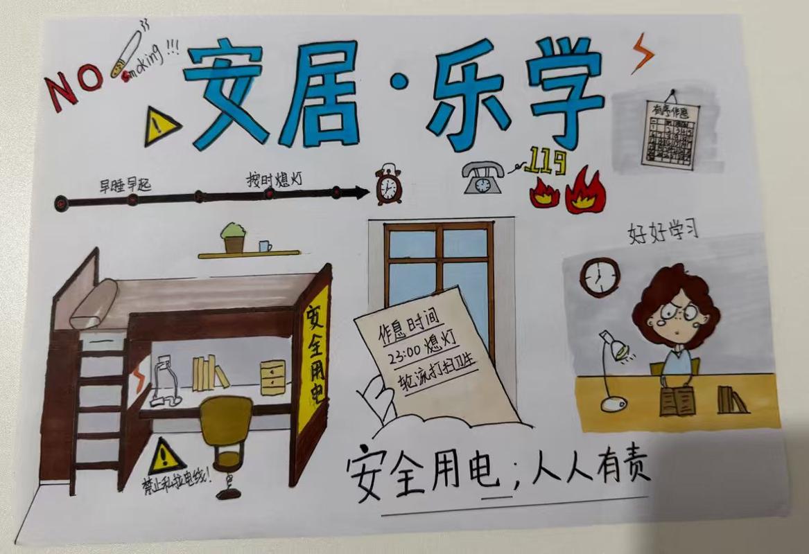 同学们以画笔为媒,将“用电不违规、作息不扰人”的文明理念融入艺术创作。一幅幅作品或色彩鲜明、构图新颖,或寓意深刻、贴近生活,在方寸画纸间传递出共建文明宿舍的心声。