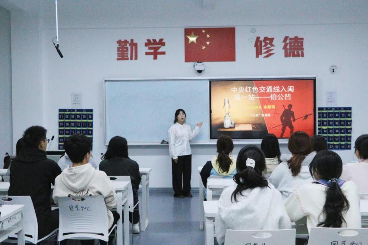 宣讲现场余淑琪同学结合伯公灯背后的革命历史与时代内涵,生动讲述了先辈们在艰难险阻中坚守信仰、勇担使命的英雄事迹。在“传灯仪式”环节,余淑琪同学手持象征精神传承的“伯公灯”,将其传递给各团支部书记。接过“灯火”的同学纷纷表示,将以伯公灯精神为指引,把爱国情、强国志、报国行融入日常学习和工作中,在新时代的征程上勇挑重担、砥砺前行,让伯公灯精神代代相传、熠熠生辉。