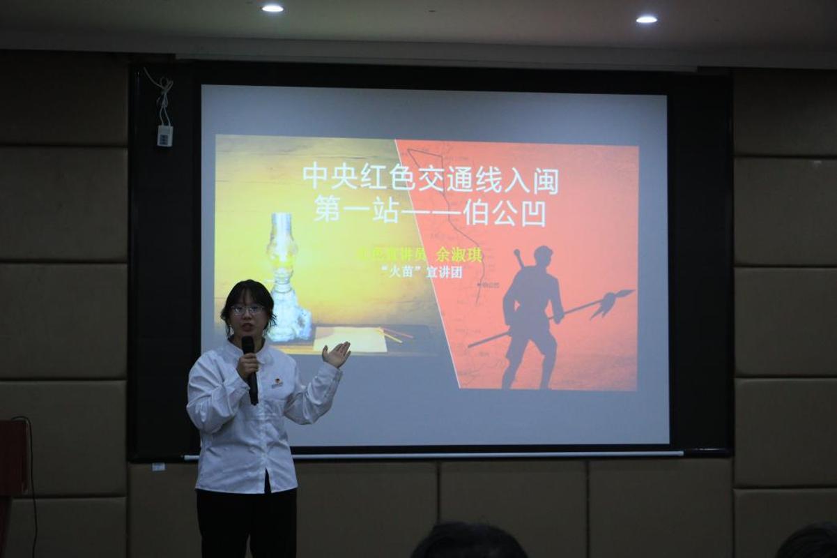 随后,沿着闽西红色交通线的历史足迹,“火苗”宣讲团余淑琪同学开展了“伯公灯”精神宣讲,她聚焦闽西红色交通线的珍贵记忆,生动解读了伯公灯作为信仰之灯、希望之灯、信号灯的精神内核,讲述伯公凹群众以灯为信、守护红色交通线的感人故事,使学员深刻领悟对党忠诚、甘于奉献的革命情怀。