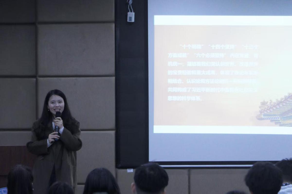 为引导青年学子深刻把握习近平新时代中国特色社会主义思想的核心要义与实践要求,推动马克思主义中国化时代化最新成果在青年群体中入脑入心,12月9日,在创业大讲堂,学院党总支副书记李雪宁以“新时代 新思想 新飞跃”为题,为青马工程培训班全体学员开展思政专题培训,以理论阐释与实践案例相结合的方式,筑牢信仰之基、凝聚奋进力量。全体青马学员100余人参加。