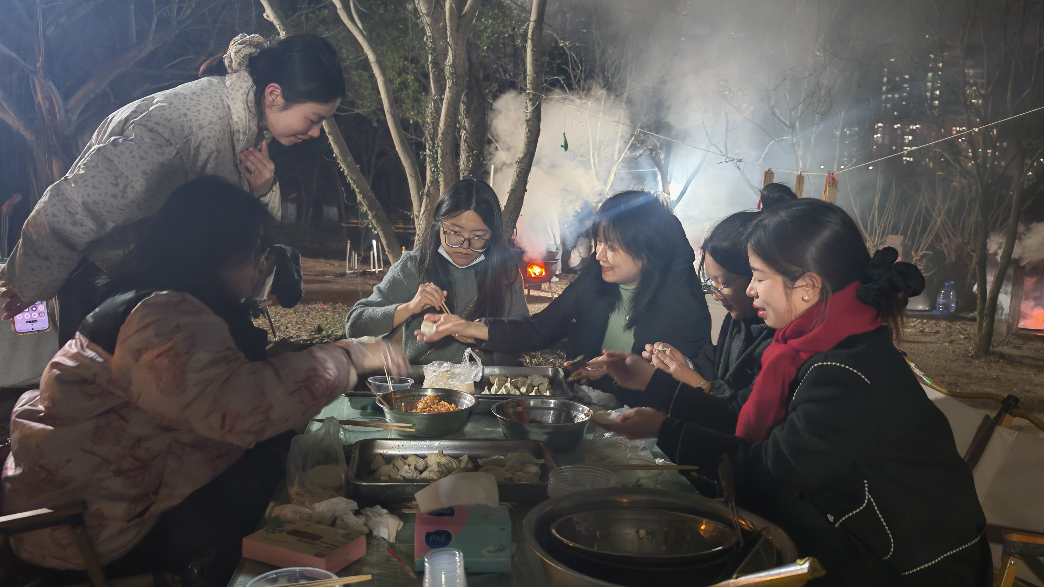 活动现场暖意融融,各位老师与同学们齐聚一堂,分工协作,共同包饺子、煮汤圆,现场欢声笑语不断。在包饺子的过程中,大家纷纷展示自己的手艺,有的包得精致小巧,有的则创意十足,捏出的饺子造型各异、趣味盎然。随着一个个饱含心意的饺子摆满托盘,沸水中翻滚的饺子逐渐浮起,浓郁的香气在现场弥漫开来。