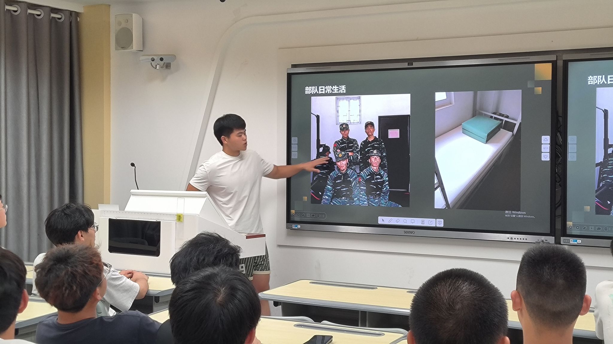 学院优秀退伍学生王志越、林智文也来到现场,分享了自己的军旅生涯。他们用亲身经历讲述了丰富多彩部队生活,以及参军对个人成长和职业发展的积极意义,生动展现了参军报国的价值与荣光。现场气氛热烈,同学们深受鼓舞。