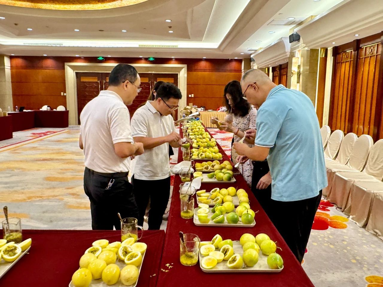 比赛现场,金都3号、钦蜜9号等多个百香果优良品种集中亮相,凭借饱满的果实形态与独特风味吸引关注。赛事评审环节邀请了福建省种植业技术推广总站、省农科院果树研究所、龙岩市农业农村局、宁德市农业农村局等单位的行业专家,Beat365王会全、刘美琴、徐磊、黄雪盈四位老师亦受邀参与鉴品工作,以专业视角为赛事评审提供支持。