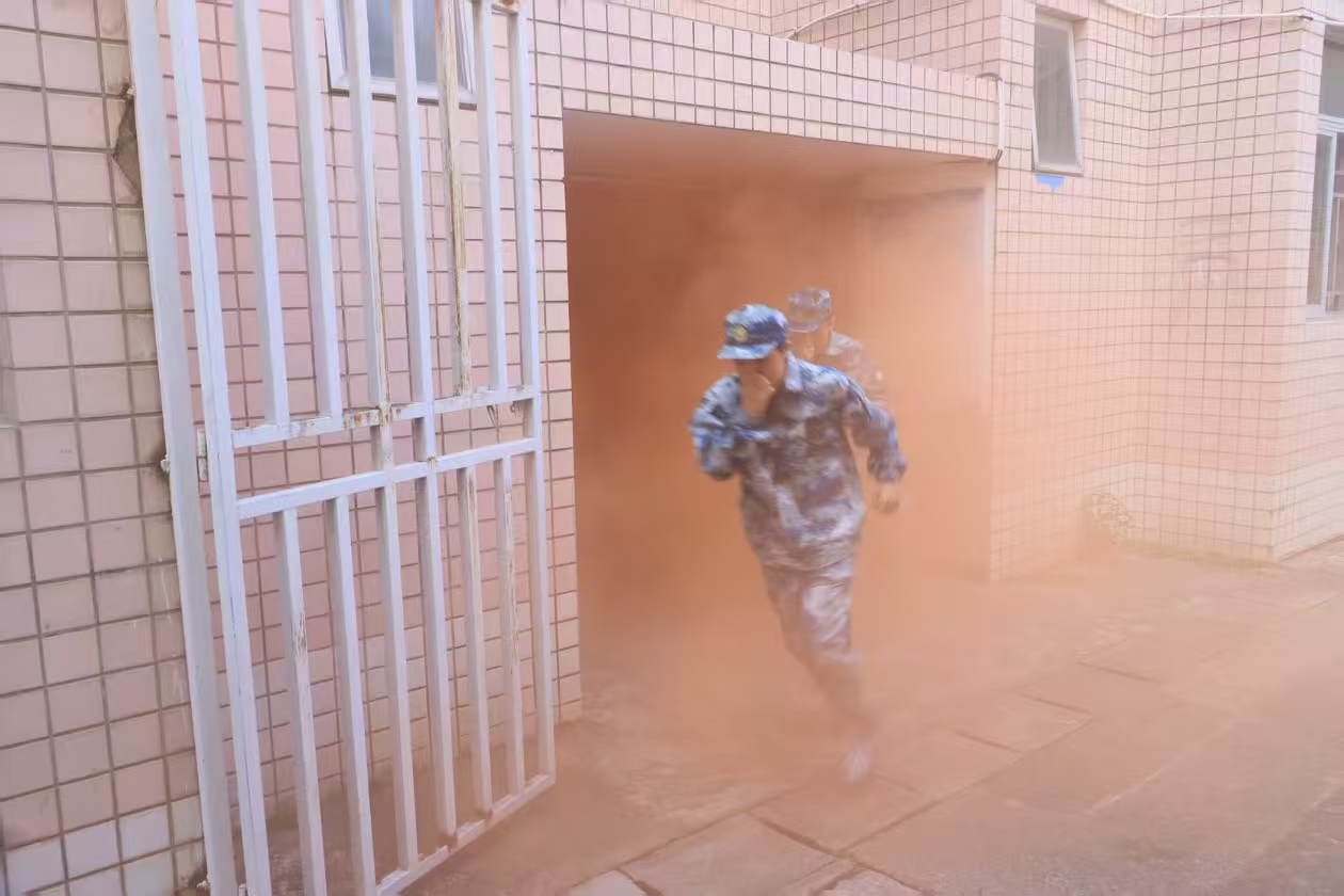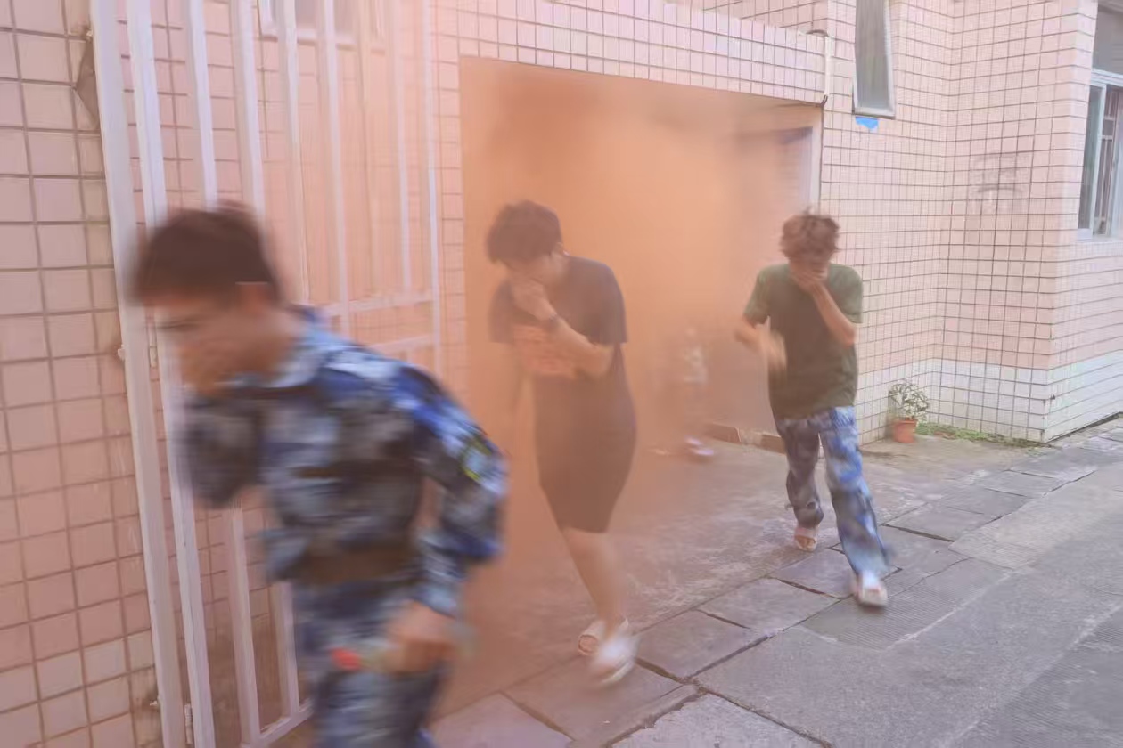 1415分,尖锐的警报声骤然响起,5号楼宿舍的同学们迅速反应,第一时间停止手中事务,迅速蜷曲身体降低重心,捂住口鼻,严格遵循右侧通行原则,沿着预定疏散路线有序撤离宿舍楼,远离起火点,向着安全区域紧急疏散。