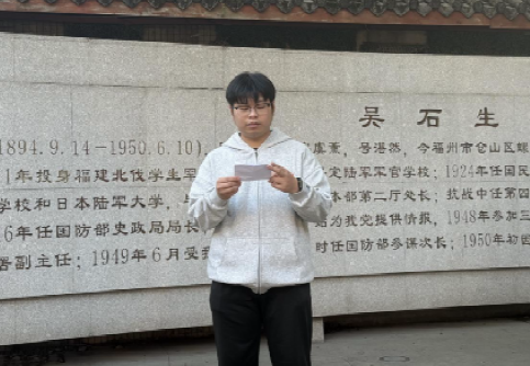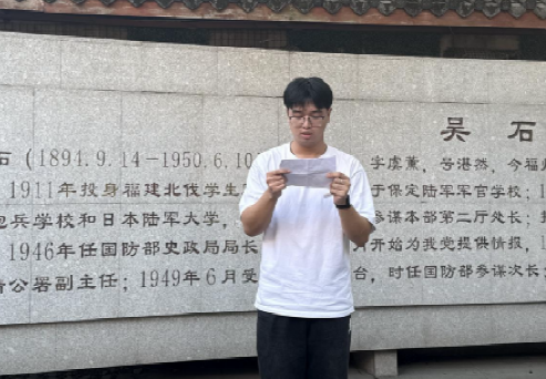 活动尾声的交流分享环节气氛热烈。学生党员围绕活动主题畅谈感悟,一致表示此次实地学习实现了思想上的淬炼与升华。“吴石将军以生命践行忠诚的精神令我动容。” 预备党员彭振薪同学表示,“作为新时代青年党员,我将以党的二十届四中全会精神为指引,把个人理想融入国家发展大局,在专业领域挺膺担当,为民族复兴贡献青春力量。” 入党积极分子吴鑫宏同学谈道:“吴石将军用生命铸就的忠诚信念震撼人心,我将以他为榜样锤炼过硬本领,传承红色基因,争取早日成为合格共产党员,把青春汗水挥洒在中国式现代化建设的实践中。”
