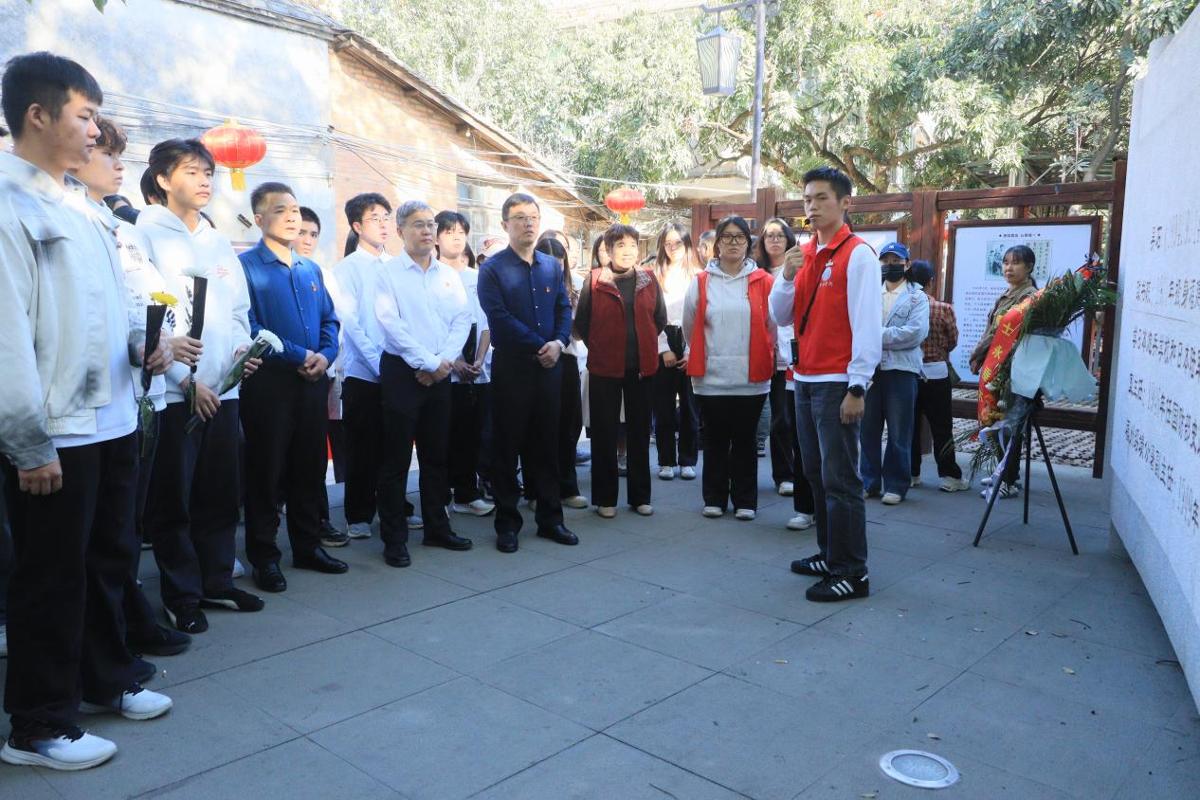 活动首站抵达吴石故居。在讲解员的深情讲述中,党员们系统了解了吴石将军传奇而又壮阔的一生。大家深刻感悟到吴石将军在复杂历史变局中坚守信仰、忠诚报国的赤子之心,真切体会到“风萧萧兮易水寒,壮士一去兮不复还”的英雄气概与舍生取义的时代价值。在吴石将军塑像前,全体人员举行了庄严的缅怀仪式。现场气氛肃穆,党员们肃立并行三鞠躬礼,依次缓步献花,表达对先辈的无限追思与崇高敬意。仪式庄重简洁,使每位党员接受了一次深刻的党性教育与精神洗礼。