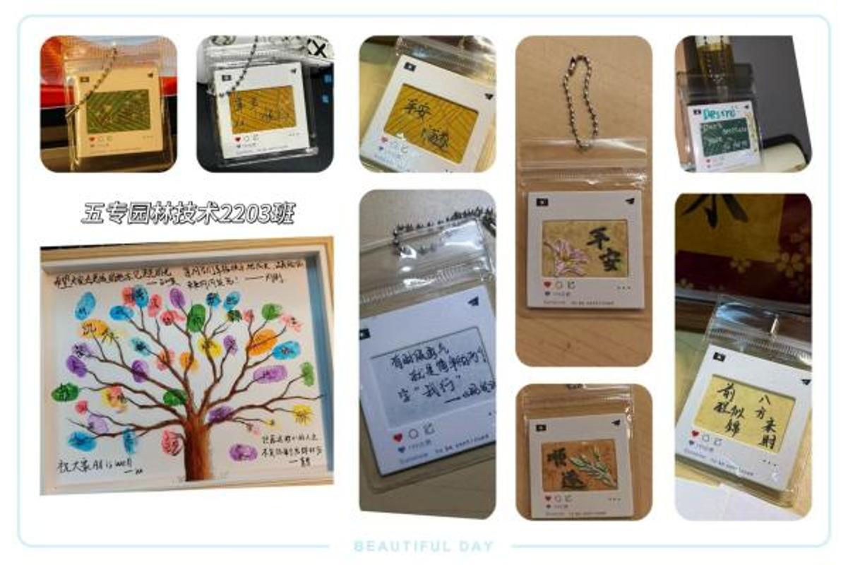 五专园林技术2203班以“一人一印,同心奋进”为主题,开展集体手指画共创,同学们依次绘制指纹,并将“笃行、致远、拼搏”等奋进类词语融入创意设计,写下青春祝语,辅导员与助导也在手绘画上留下寄语,通过协作创作传递团结力量,凝聚起共赴新征程的奋进共识。