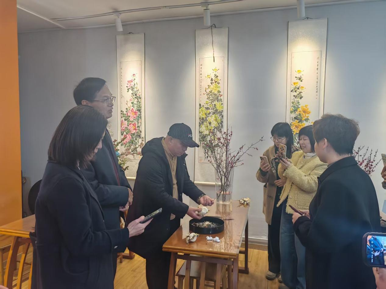 陈绍岚副会长展示水仙花雕刻技艺