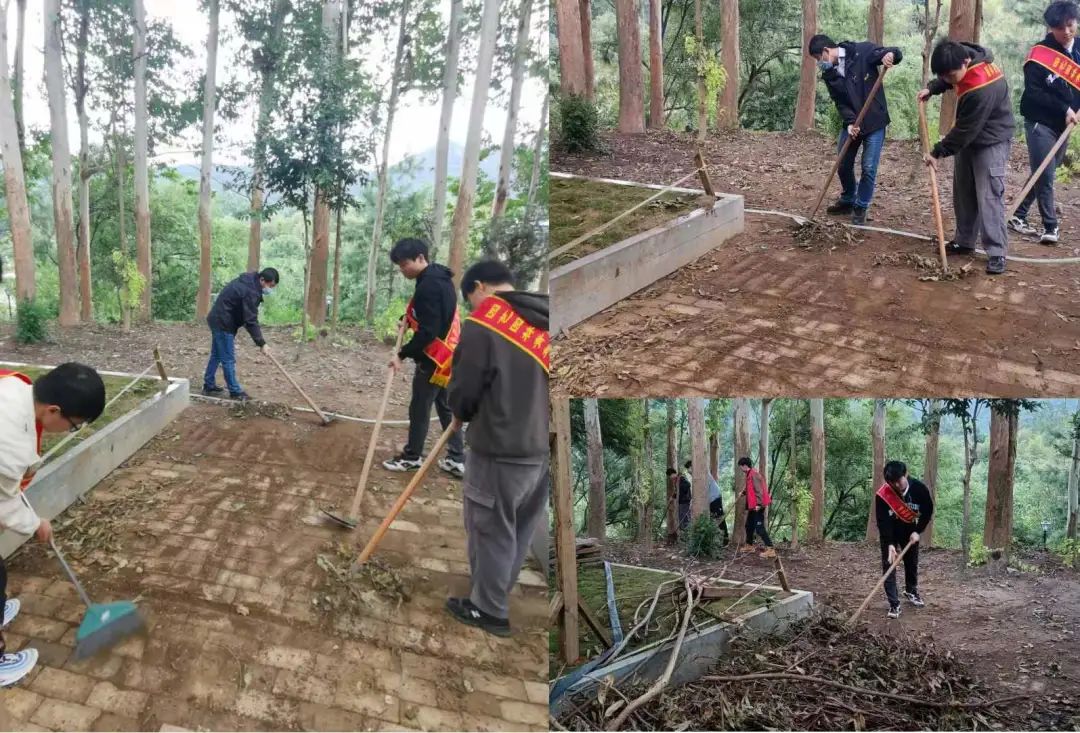 秋风飒爽今又是,践行精神正当时。5日上午9点,参加活动的70余名师生准时集中篮球场。陈剑波副书记作了动员讲话,号召师生以实际行动践行二十大精神。在明确任务后,70余名师生分组前往林荫大道东侧的绣球花圃、园林微景观长廊、桉树林以及园艺园林学院园林景观赛场,清理碎石废砖头、枯枝落叶、杂草泥沙等。师生们多法并用,扫把扫、锄头挖、铁锹铲、斗车推甚至徒手搬,经过近3个小时的努力,终于把几处场所的垃圾清理干净,场所面貌焕然一新。