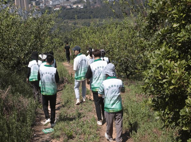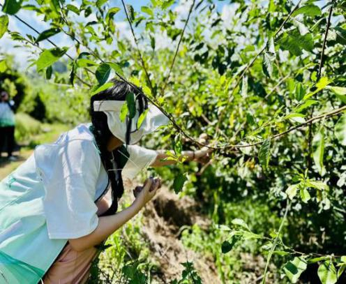 次日早上,队员们又在江总的带领下,前往大山深处的李子果园。通往果园的山路陡峭且崎岖不平,到达果园时,轻装徒步的队员们已然上气不接下气。此时,果园里已有数位果农摘下了数箩筐的李子。队员们稍作休息之后,便在果农的带领指导下深入果园采摘李子。队员们一边采摘一边虚心向果农请教李子的种植条件、生长环境、生长周期、种植技巧、采摘技术、运输保鲜等。