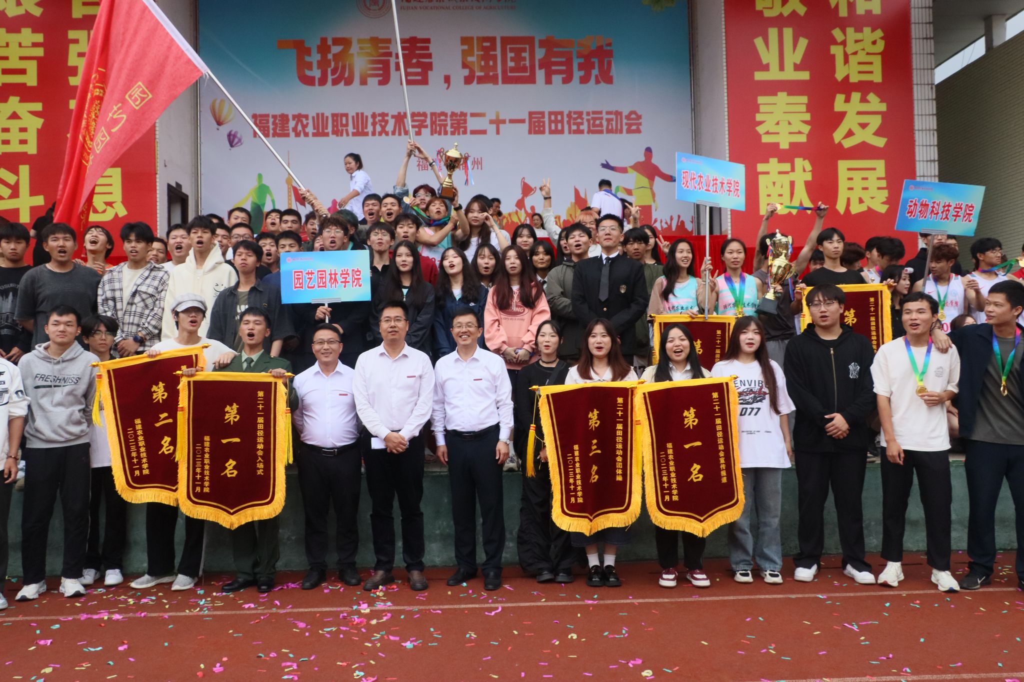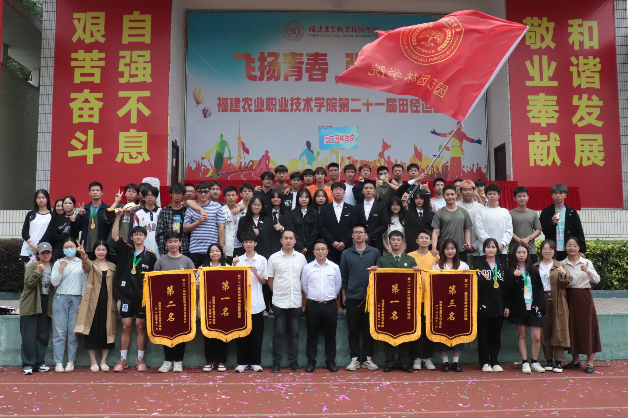 短跑、长跑、跳高、跳远......赛场上,园艺园林学院运动健儿们敢于挑战、勇于争先,用青春挥洒汗水,或威猛如虎,或矫健如燕,或离弦之箭,展现青春独属的坚持与拼搏。经过为期三天的激烈角逐,在赛场上斩获佳绩: