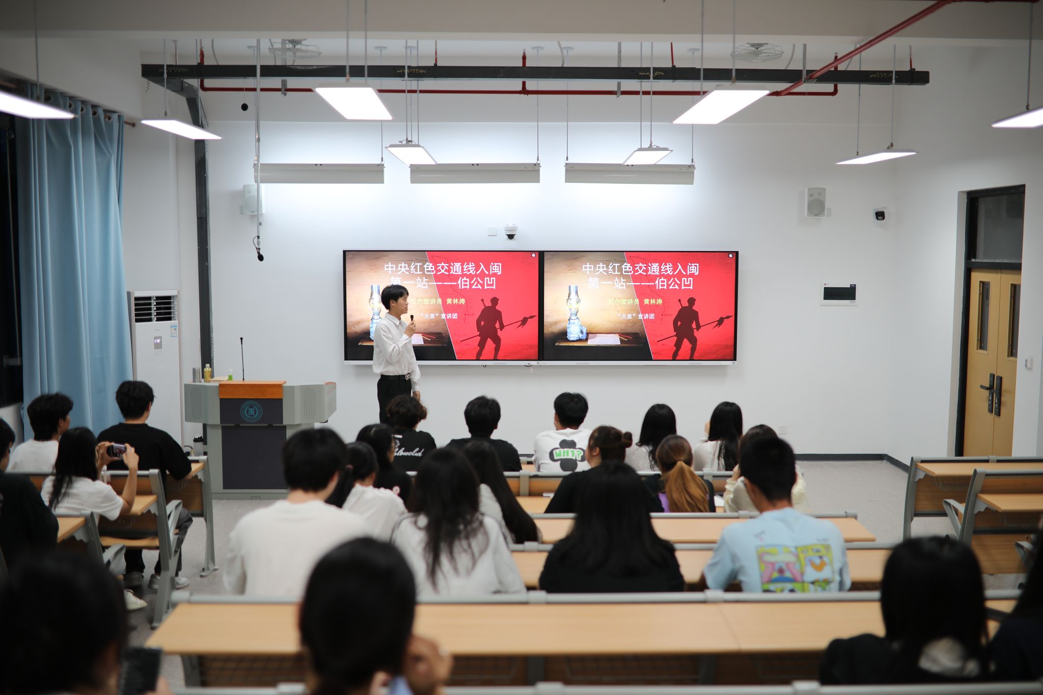 宣讲现场,黄林涛同学依托详实史料,生动讲述了“伯公灯”背后的革命故事。他从土地革命战争时期的斗争历程切入,还原了一盏盏“伯公灯”如何在深夜乡间传递情报、凝聚民心的历史场景,勾勒出革命先辈以信念为灯、以热血为焰的壮丽画卷。使青马班学员在历史回溯中深刻体悟到“伯公灯”所承载的忠诚、坚守与奉献的精神内核。