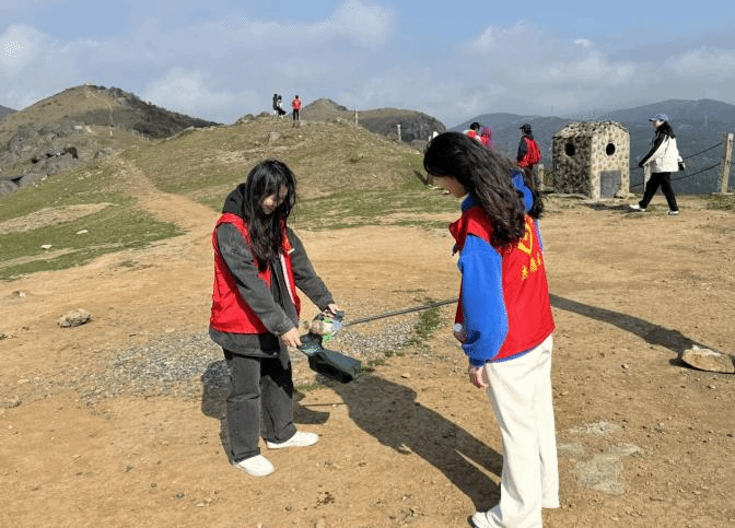 随后,师生分组开展“巡河护水·青山行动”。队伍沿大姆山草场及大山湖沿岸清理塑料瓶、枯枝、露营遗留垃圾等污染物。同时,党员们主动向周边游客讲解生态保护知识,用实际行动诠释"绿水青山就是金山银山"的理念。