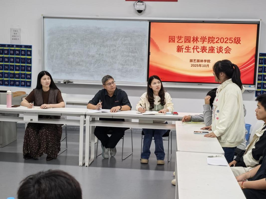 2025年10月29日下午,园艺园林学院2025级新生代表座谈会暨校园行为“八不”规范座谈会在教学楼2号楼507会议室顺利举行。本次座谈会以“倾听‘新’声,共促成长”为主题,旨在精准掌握新生入学适应情况,系统传达校园“八不”行为规范要求,广泛征集学生对学院教学管理、服务保障等工作的意见建议。园艺园林学院党总支书记徐捷、副书记李雪宁、学工办主任沈云玉及各专业新生代表参会。