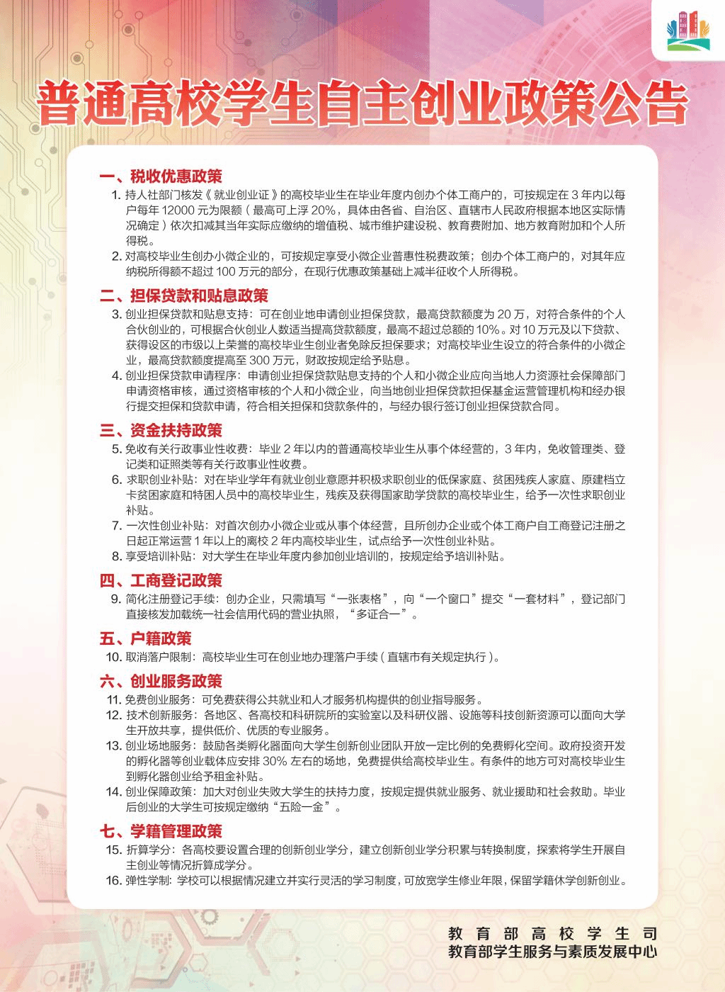 教育部高校毕业生就业创业政策自主创业篇