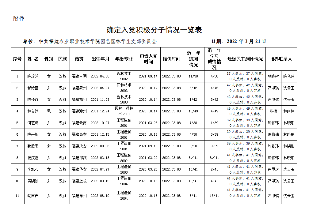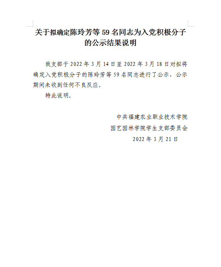 关于拟确定陈玲芳等59名同志为入党积极分子的公示结果说明